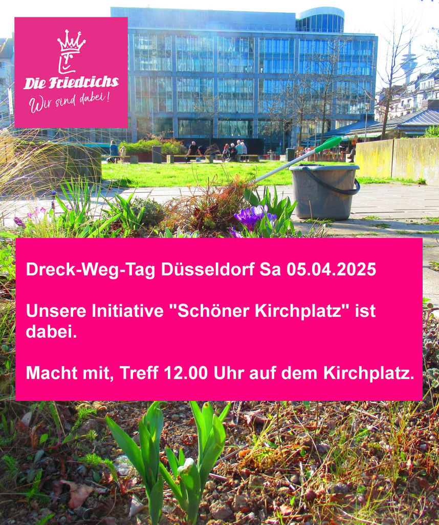 Düsseldorf · Auf Initiative der Anrainergemeinschaft „Die Friedrichs“ hat sich die Gruppe „Schöner Kirchplatz“ zusammengefunden. Beim Mülleinsammeln erfuhren die Anwohner jetzt, wie es mit der Umgestaltung des Platzes weitergehen soll.