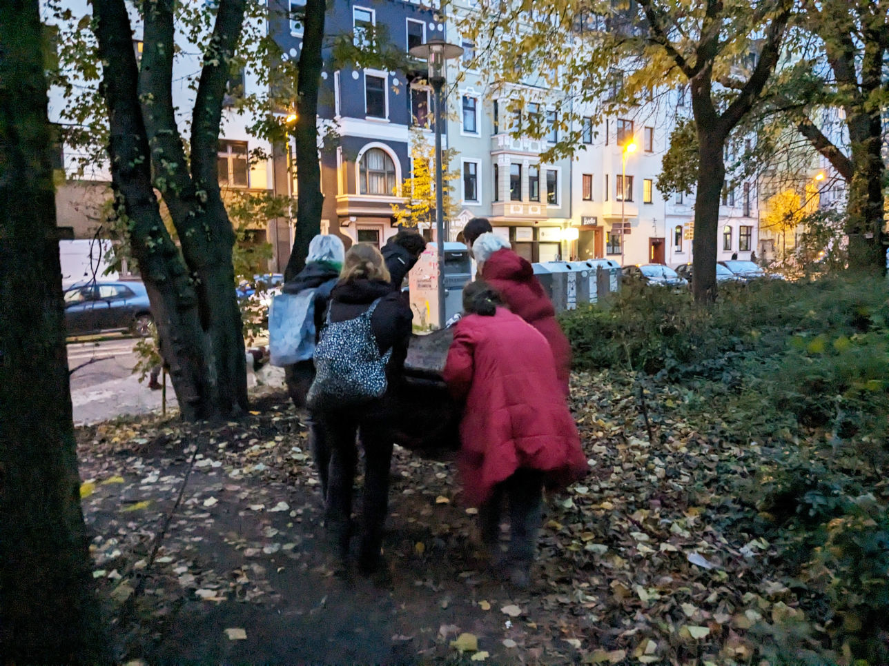 Ziel ist es, den Platz vom Müll zu befreien und wenn der Frühling kommt, das Grün zu pflegen. Dazu gehört das derzeit noch von Baustellen geplagte Gelände südlich der Kirche, aber auch die baumbestandenen Hochbeete des Platzes. Auch zusätzliches Gießen ist an heißen Sommertagen angesagt. In erfolgter Absprache mit dem Gartenamt (Danke!) und Unterstützung von Platzgrün/pro düsseldorf e.V. (Danke!) gehören zur Grünpflege auch die Baumscheiben auf der Friedrich-, und Elisabethstraße sowie die bepflanzten Flächen nahe der Tiefgarage. Auch nach dem wahrscheinlich erst 2025 erfolgenden Umbau des Platzes. Beim letzten Treff gab es ein gutes Einvernehmen mit der Kirche St. Peter und Zusagen der gegenseitigen Unterstützung.