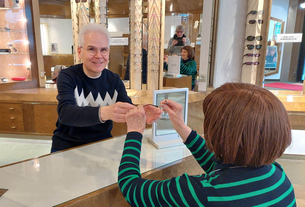 „Ich habe viele Stammkunden, die entweder genau wissen, was sie möchten oder dadurch, dass wir uns seit vielen Jahren kennen, sich gerne von mir beraten lassen“, erzählt der Optiker und freut sich, dass „zu mir immer noch Kunden kommen, die früher einmal hier im Viertel gearbeitet haben, inzwischen aber längst woanders wohnen“. Dieser Stammkunden-Schatz trage ihn auch durch schwierige Zeiten, wie beispielsweise die Corona-Pandemie.